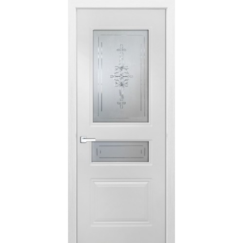 Дверь с ПВХ покрытием Эмма 60 ДО (Софт Белый, Гравировка)